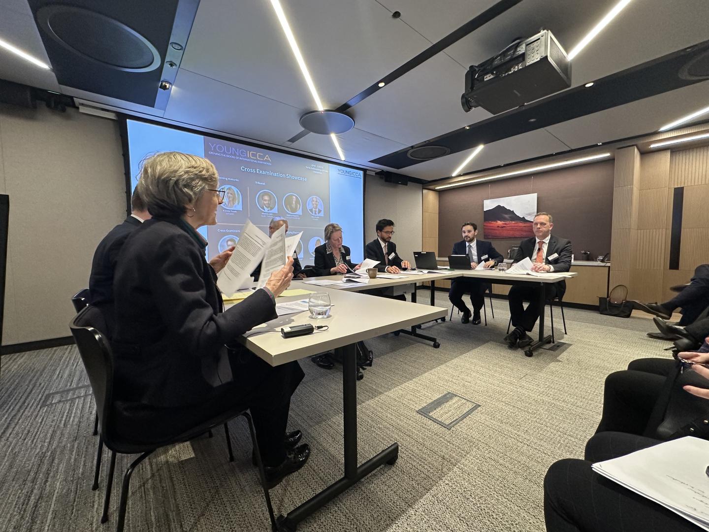 The workshop then culminated in a grand finale - the Cross Examination Showcase. The showcase began with an introduction from Katrine Tvede, Young ICCA Co-Chair and Senior Associate at Ashurst LLP, who gave her 'sales-pitch' for the Young ICCA organization and its role in opening doors for young practitioners to access its global knowledge network. Ms Tvede particularly praised the Young ICCA's global events program, including the 2025 Paris retreat and other mentoring initiatives. Ms Tvede remarked that these were incredibly rewarding opportunities for young practitioners to hear war stories, gain contacts, and develop their skills.
